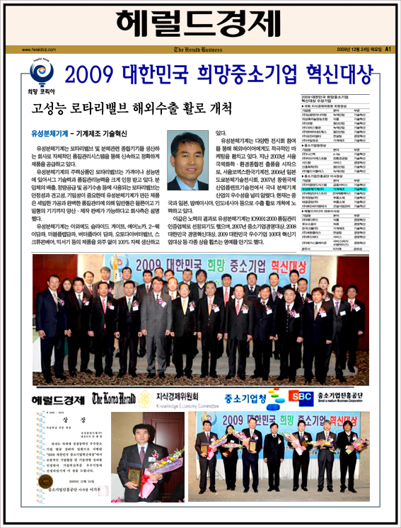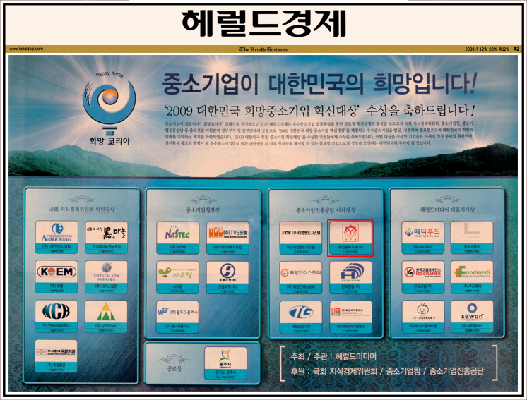 2009 대한민국 희망중소기업 혁신 대상 수상