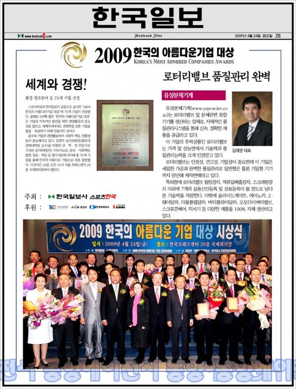 "2009 한국의 아름다운 기업 대상"을 수상 하셨습니다.