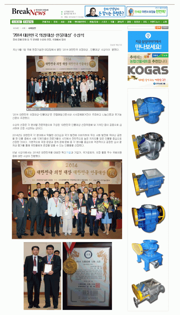 2014 대한민국 인물 대상 페이지 정보 작성자 관리자 댓글 0건 조회 2,977회 작성일 14-10-06 12:11 본문 2014 대한민국 인물대상 목록 이전글2014 대한민국 중소·중견기업혁신대상 14.12.22 다음글2013 국회인물대상 수상 13.06.10 댓글목록 댓글목록 등록된 댓글이 없습니다.