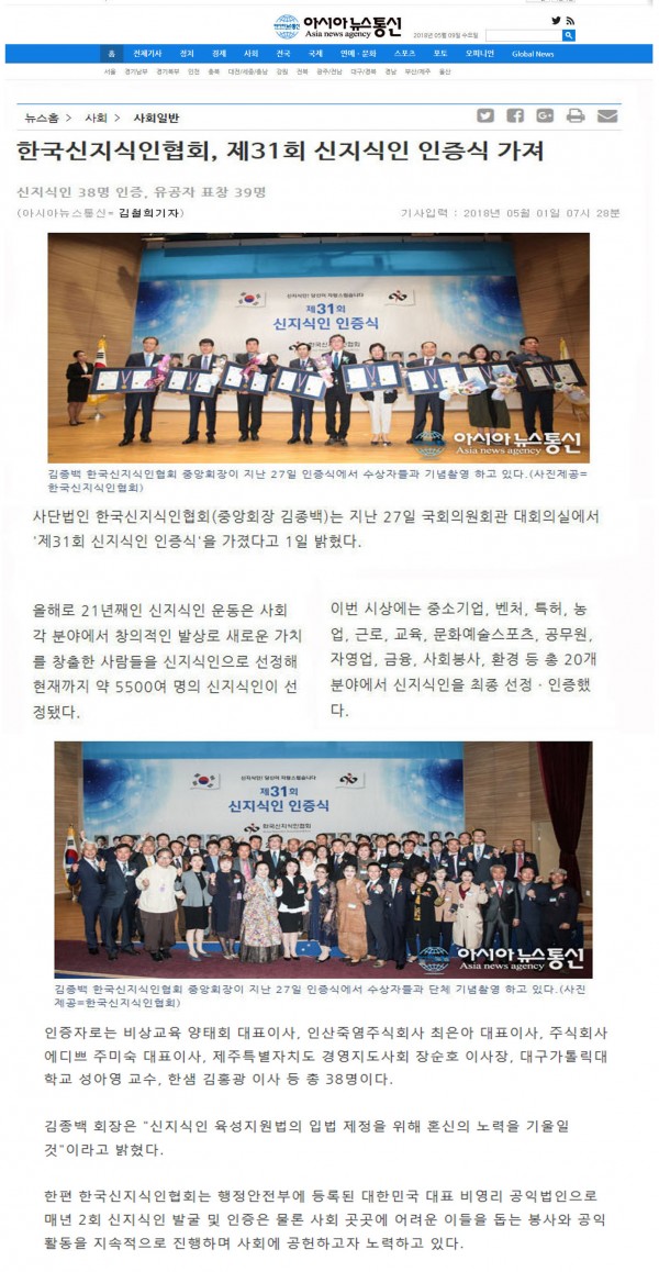 2018 " 신지식인" 인증식 보도 페이지 정보 작성자 홈관리자 댓글 0건 조회 1,748회 작성일 18-05-09 14:56 본문 2018 제31회 국회의원 회관에서 "신지식인 인증식"이 열렸다. 목록 이전글2018 대한민국 가치경영대상 보도 18.06.04 다음글2017 제15회 대한민국 인물 대상 17.12.08 댓글목록 댓글목록 등록된 댓글이 없습니다.