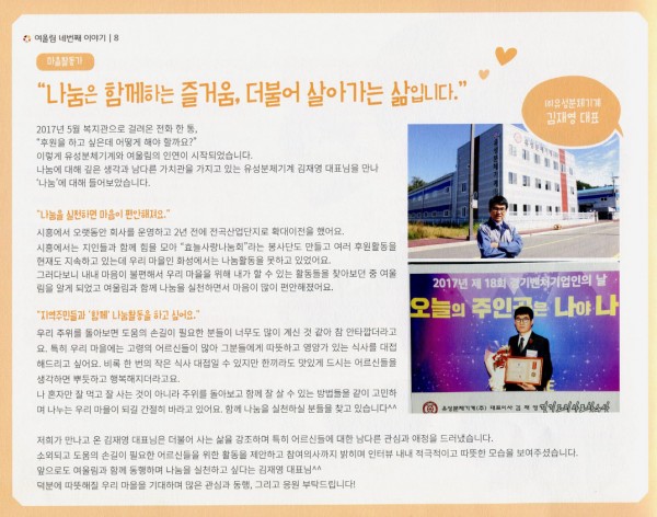 여울림 종합 사회복지관 4호 게재 페이지 정보 작성자 홈관리자 댓글 0건 조회 1,183회 작성일 19-02-28 08:56 본문 . 목록 다음글[여기에]산업포털월간지 2018-10월 기사 18.10.16 댓글목록 댓글목록 등록된 댓글이 없습니다.