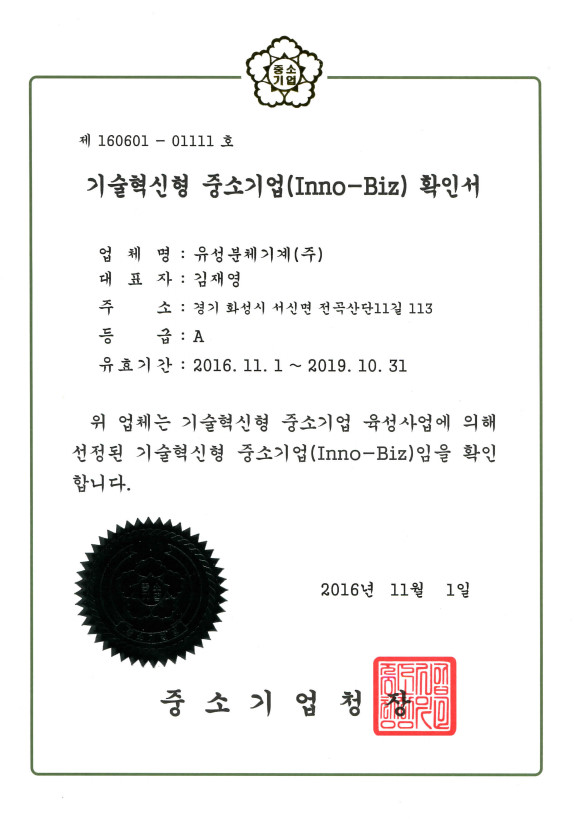 기술혁신 이노비즈 인증 페이지 정보 작성자 홈관리자 댓글 0건 조회 2,967회 작성일 16-11-10 12:36 본문 기술혁신 중소기업 이노비즈 인증 " A 등급" 을 받았습니다. 첨부파일 기술혁신중소기업확인서.pdf (399.5K) 9회 다운로드 | DATE : 2016-11-10 12:36:12 목록 이전글대한민국 국회 인물대상 시상식 16.11.22 다음글신용기술평가 우수기업인증 16.11.07 댓글목록 댓글목록 등록된 댓글이 없습니다.