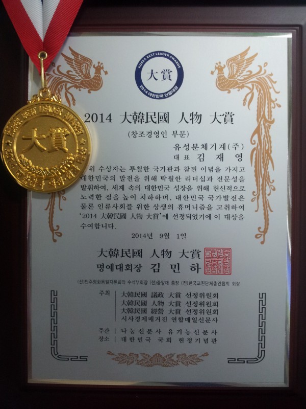 1. 제묵 : 2014 대한민국 국회인물(기술혁신 부문) 대상 선정 (김재영 대표이사)