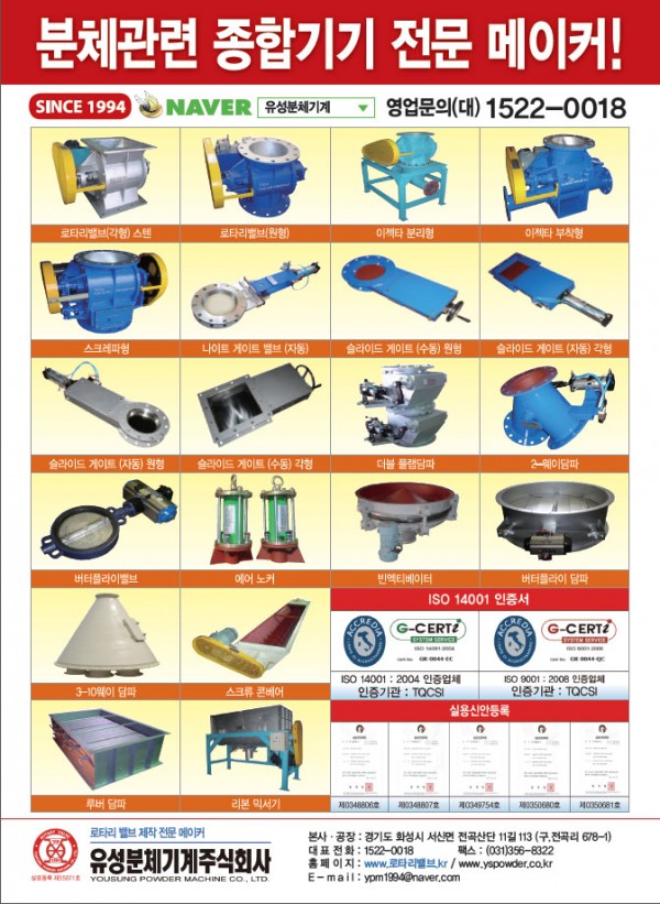 제품 홍보원고 (유분체기술,기계기술,첨단) 페이지 정보 작성자 홈관리자 댓글 0건 조회 3,413회 작성일 16-03-31 22:36 본문 유분체 기술, 기계기술, 첨단 월간지 홍보 광고 원고 입니다. 첨부파일 유성분체기계-수정.pdf (16.9M) 23회 다운로드 | DATE : 2016-09-08 10:33:30 목록 이전글17:00 영업상담 종료 시간 입니다. 16.07.04 다음글2014. 중소기업진흥공단 기술혁신 대상 14.11.26 댓글목록 댓글목록 등록된 댓글이 없습니다.
