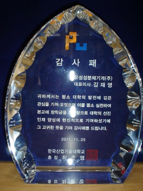 한국산업기술대학교 총장 감사패 페이지 정보 작성자 홈관리자 댓글 0건 조회 3,604회 작성일 12-02-18 22:37 본문 한국산업기술대학교 총장 감사패(2011. 11.25)(산업기술최고위 ITP17기) 목록 이전글효 늘사랑나눔회 공로패 12.02.18 다음글한양대학교 총동문회장 공로패 12.02.18 댓글목록 댓글목록 등록된 댓글이 없습니다.