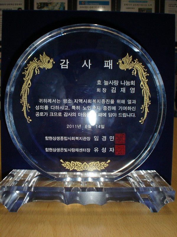효늘사랑나눔회 함현상생종합복지관장 감사패 페이지 정보 작성자 홈관리자 댓글 0건 조회 3,763회 작성일 11-11-15 14:34 본문 효늘사랑나눔회(회장 김재영)은 노인복지증진에 기여공로로 함현상생종합사회복지관장 임경민님으로부터 감사패 목록 이전글26회 인도네시아 자카르타 국제엑스포 출품전시 11.12.07 다음글"제2회 대한민국 CEO경영대상" 시상식 11.11.14 댓글목록 댓글목록 등록된 댓글이 없습니다.