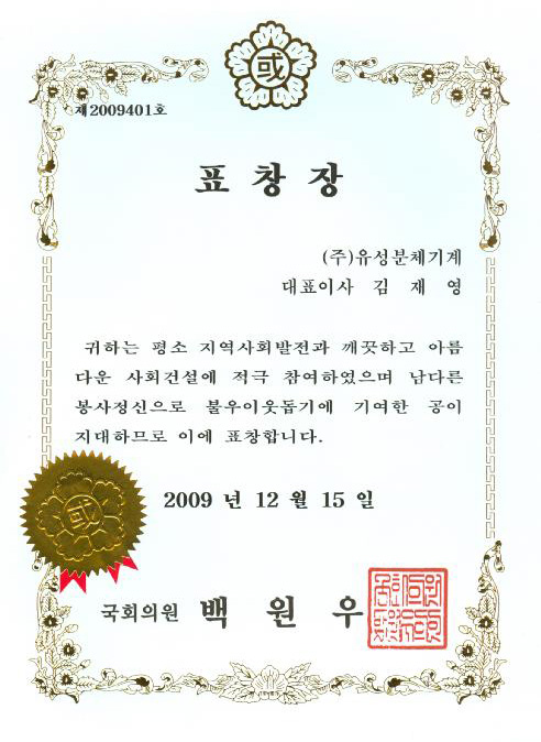 시흥시 국회의원 표창장 페이지 정보 작성자 홈관리자 댓글 0건 조회 6,990회 작성일 10-01-22 12:24 본문 시흥시 국회의원 표창장 목록 이전글2010 대한민국 선도기업 선정패 10.02.08 다음글한양대학교 경영대학원 원우회장 취임 10.01.06 댓글목록 댓글목록 등록된 댓글이 없습니다.