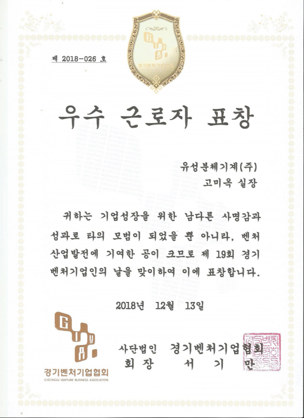 "2018 벤처기업 협회 우수모범 고미옥 표창" 페이지 정보 작성자 홈관리자 댓글 0건 조회 3,509회 작성일 18-11-29 21:56 본문 당사 영업관리부에 근무하는 고미옥 실장님이 "2018 경기벤처기업 협회 우수모범 근로자 "에 선정되어 표창수상을 하였기에 축하하여 주시면 감사 하겠읍니다. - 일시 : 2018. 12. 13(목) 15:00 - - 장소 : 경기과학진흥원 광교홀 목록 이전글"2018 유망중소기업 인증서" 18.12.12 다음글"2018 경기도 일하기 좋은기업 인증식" 18.11.16 댓글목록 댓글목록 등록된 댓글이 없습니다.